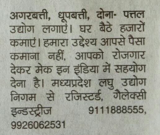Dainik Bhaskar Ad...Be your own Boss For more info visit us at http://donapattalagarbatti.com/Dainik-Bhaskar-Ad-Be-your-own-Boss/b45