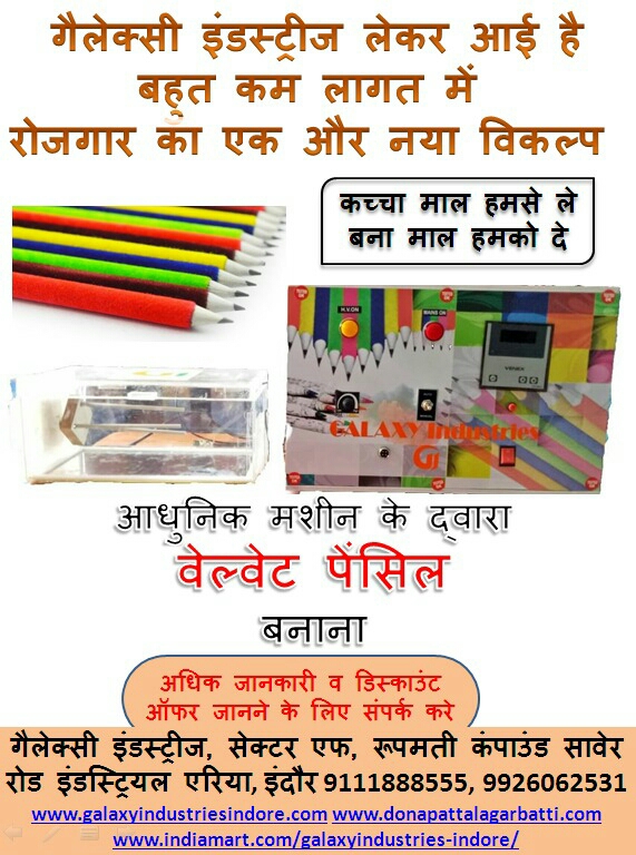Galaxy Industries now brings another business option for you in which you can earn money from home. Velvet pencil making machine, Buy back option available.