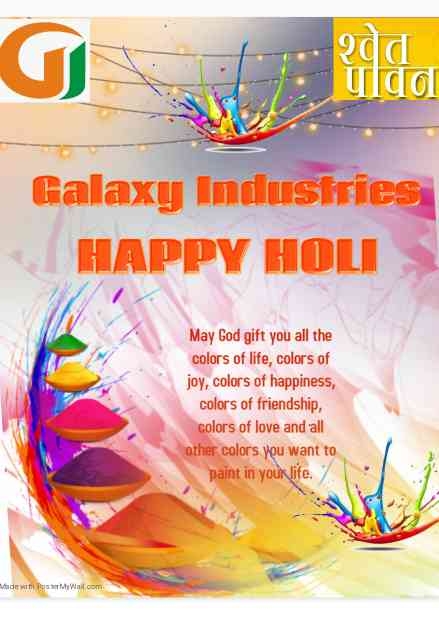 Wishing you a colourful day a colourful life colour your mind with positivism and happiness happy holi.... From Galaxy Industries